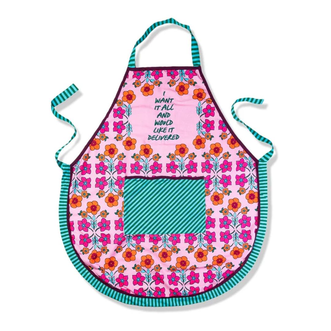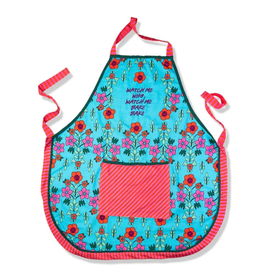 Cooking made chic - this pretty printed apron elevates the everyday and adds a colorful charm to your kitchen. Handmade in India, the cheery color combo and the striped trim make a bold statement.34" long x 32" wide with 20" ties