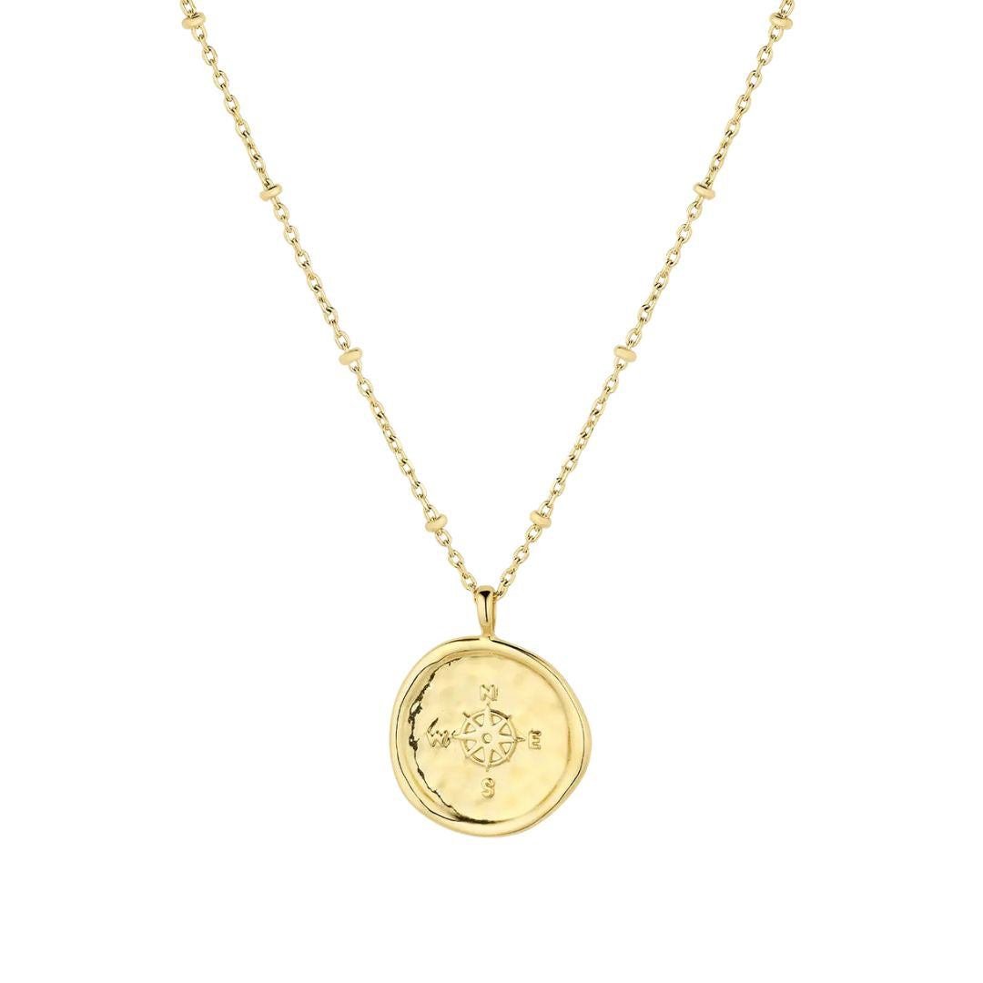 This Compass Coin Necklace is perfect for anyone who loves to explore. Its gold-plated coin features a compass design and its adjustable chain is perfect for layering with other necklaces.