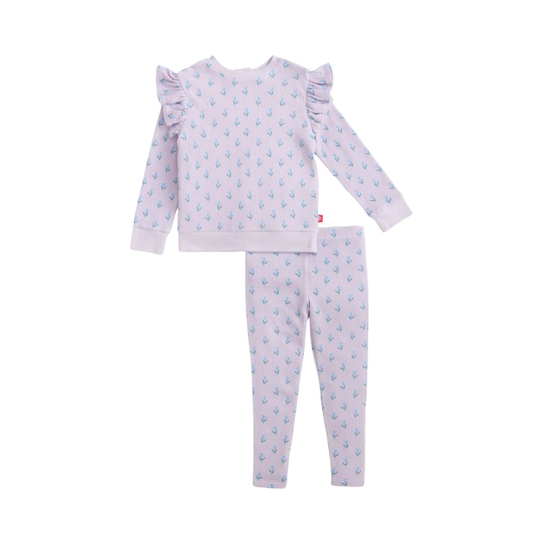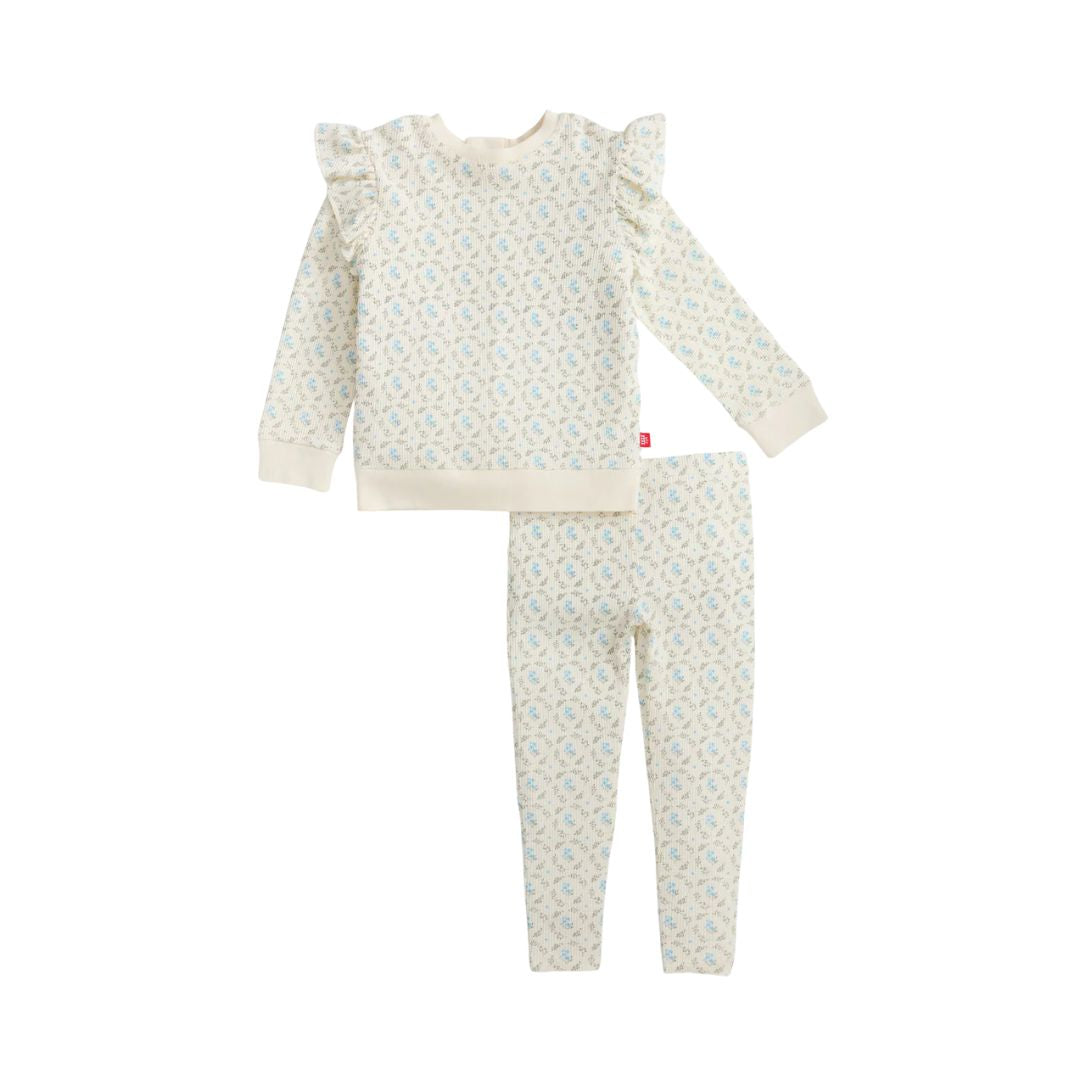 This Top & Legging Set is designed with a magnetic closure on the top that expands the neckline for faster over-the-head dressing, while stretchy bottoms speed up diaper changes. With whimsical flutter sleeves and the cozy texture of waffle modal, it's designed for baby to wear out and about—but it’s just as comfy as our pjs.