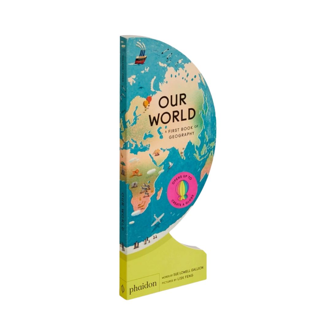 Selected by Parents Magazine as a Best Book of the Year, Our World is a colorful, creative celebration of our planet. This read-aloud introduction to geography is also a beautifully designed object which opens and folds back into a sturdy circular globe fastened by a hidden magnetic closure.